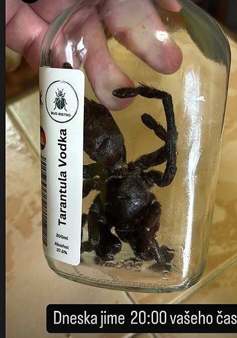 Pochlubil se totiž také například vodkou s vylouhovanou tarantulí, kterou si v místním obchodě koupil. Nezapomněl nás ujistit, že tato tarantule je opravdu jedovatá, proto ji je třeba tepelně zpracovat, než se do ní pustíte. Novby nad tím předtím však příliš nepřemýšlel, celou lahev do sebe kopnul a pochlubil se tělem tarantule na dně.