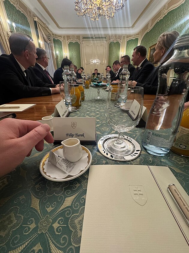 Po ní byl prostor i na neformální rozhovory a kandidát na post ministra životního prostředí prozradil, že si popovídal i s premiérem Robertem Ficem. Ten mu popřál, aby dobře dopadlo jeho jednání s prezidentem Petrem Pavlem, který po Turkovy chce vysvětlit některé kauzy z minulosti a podmiňuje tím jeho účast ve vládě.