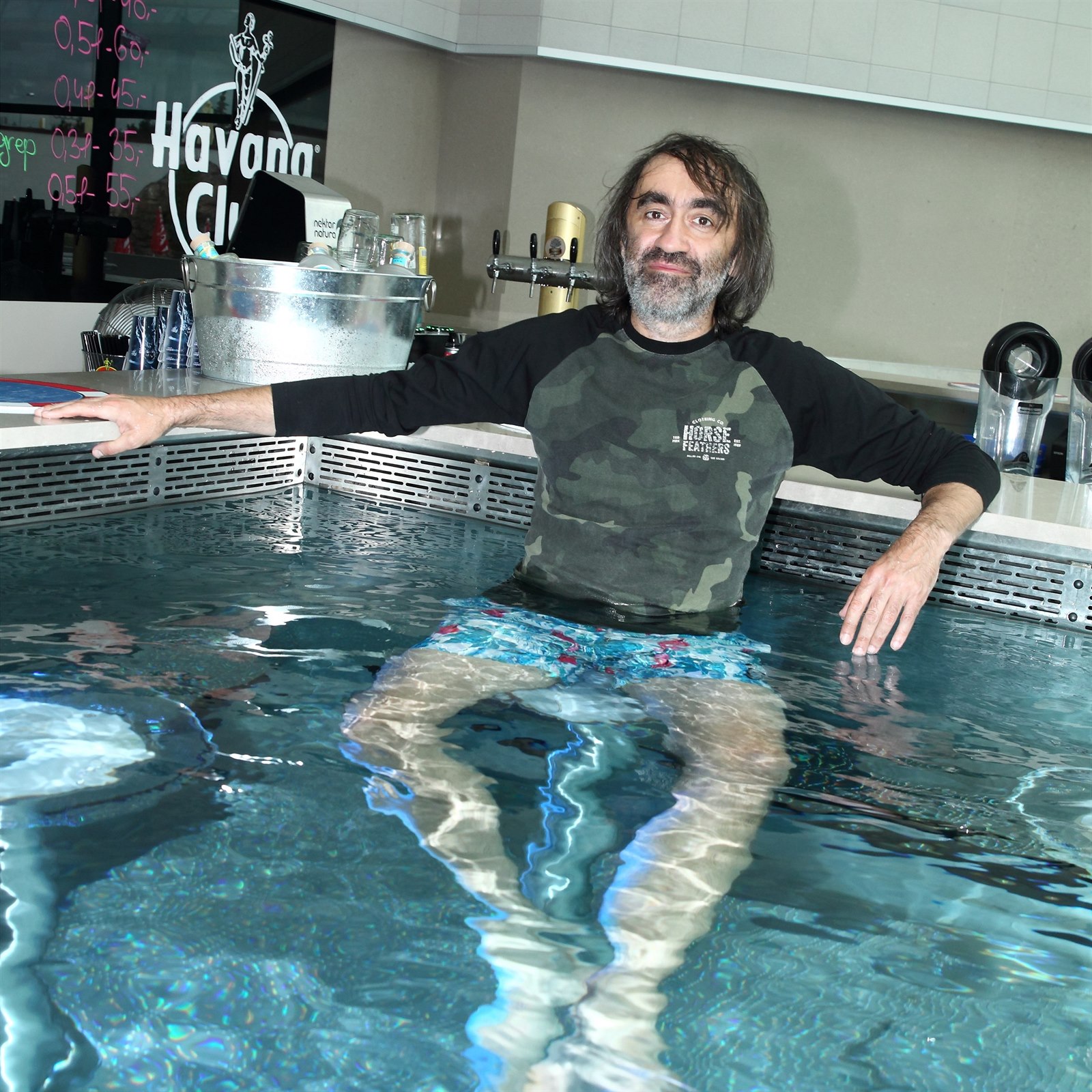 Tu šanci nevzal za pačesy, aby ukázal, že to jde i bez břišního pekáče, ale naprosto ji zazdil. Kdo jiný nosí do bazénu triko? Nikdo jiný z návštěvníků komplexu Aquapalace Praha neměl při koupání jiný oděv než plavky.