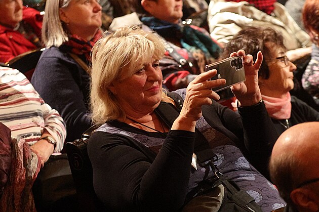 Než ho blondýnka stihla ze svého batohu vylovit, herec Ivan Trojan musel na pódiu přerušit svoji velmi dojemnou řeč, během níž Hlaváčové děkoval do nebe nejen za sebe, ale i za její věrné studenty.