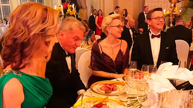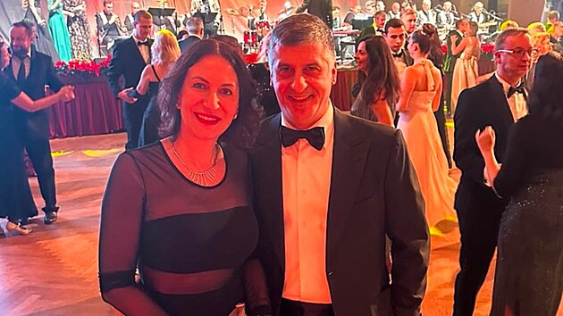 Primátor Prahy Bohuslav Svoboda zaujal nejen svou hostitelskou rolí, ale i perfektně padnoucím smokingem. První tanec patřil jeho manželce Pavle, která zvolila smaragdově zelené šaty s řeckým střihem a efektním detailem přes rameno. Barva byla skvělou volbou, ovšem při pohledu zezadu bylo jasné, že šaty mohly lépe padnout v oblasti zad. Přesto Pavla Svobodová patřila k nejvýraznějším dámám večera, a na parketu v objetí svého manžela působila jako ztělesnění elegance.