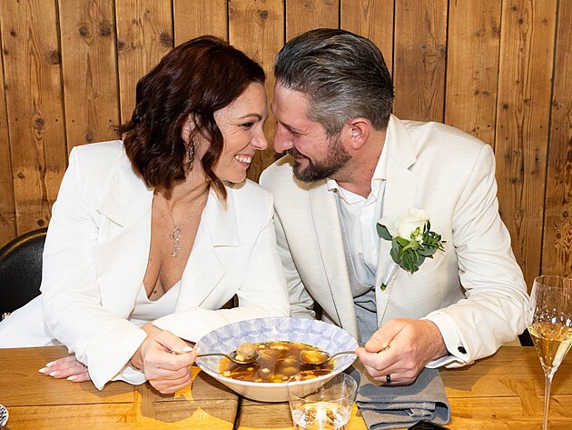 U známého šéfkuchaře došlo i na tradiční polévku, kterou se novomanželé navzájem krmili. Redakce už je ale zastihla v o poznání romantičtějším momentu – v úvodu svatební noci.