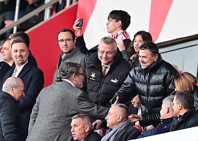 Společnost mu dělal předseda představenstva Jaroslav Tvrdík a problémový asistent kouče Trpišovského Zdeněk Houštecký, který kvůli svému chování nedávno musel jít na kobereček.