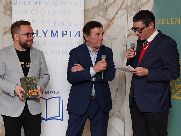 Měl skvělou náladu. Když byl vyzván, aby se připojil k ostatním u mikrofonu a k nové knize Luboše Procházky pronesl pár vět, všechny pozdravil.